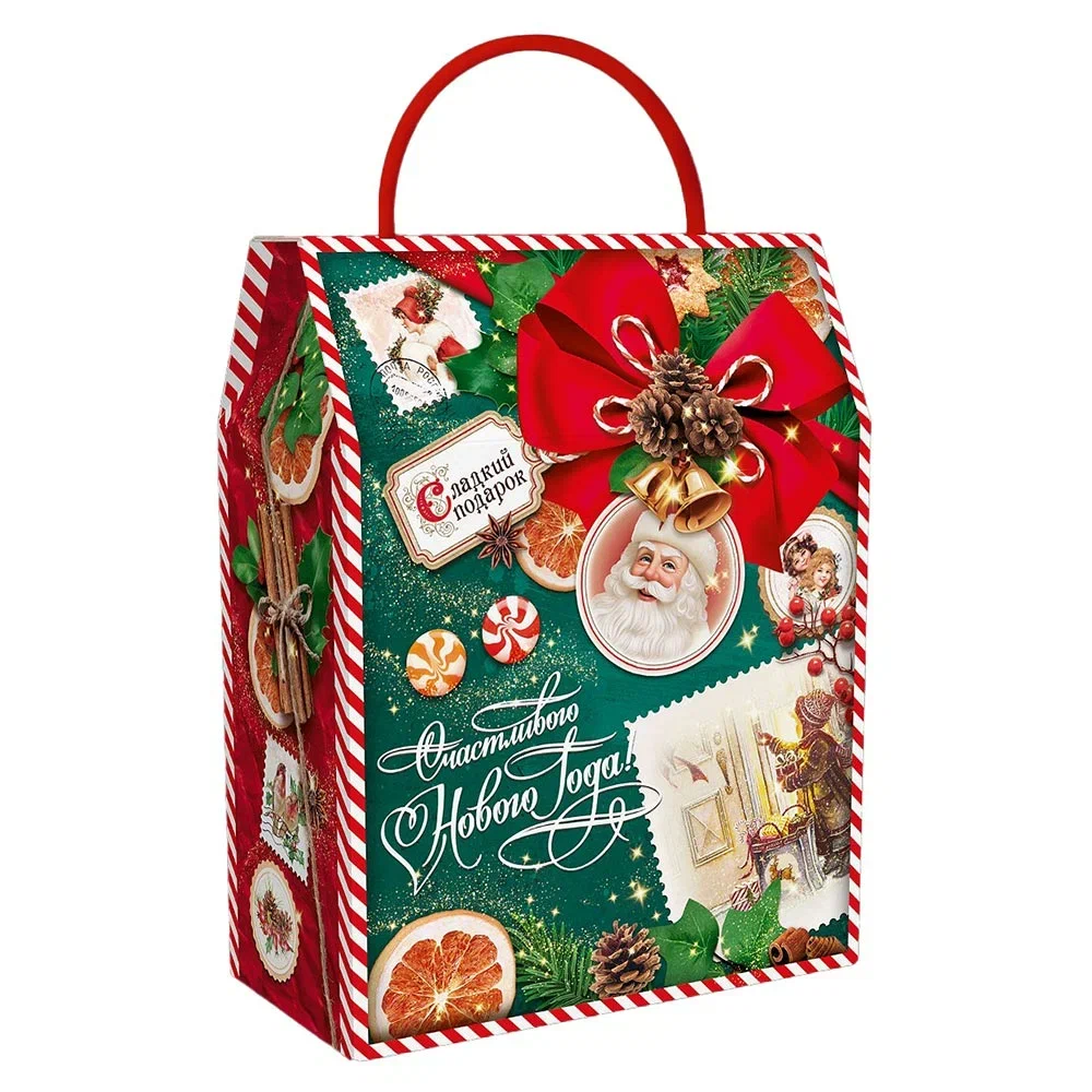 Сладкий подарок в картонной упаковке "Изумрудный Винтаж" 300г Премиум.